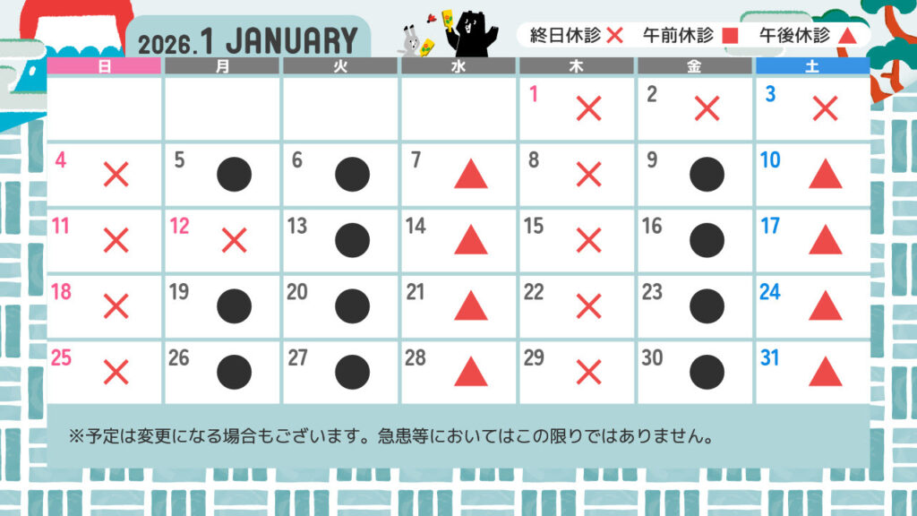 1月 診療カレンダー